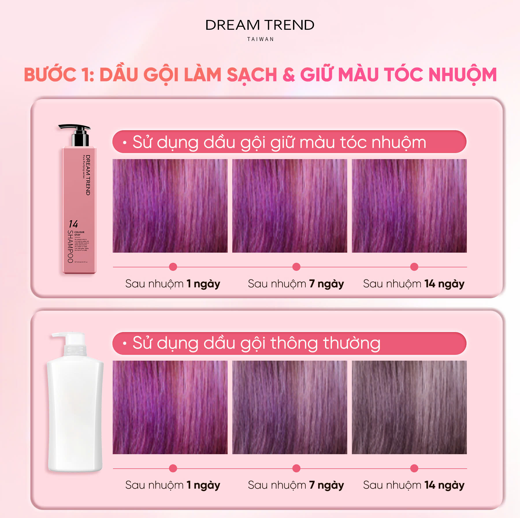 Combo Khóa màu tóc nhuộm DREAM TREND - Tinh chất AHA hồng & Dầu gội hồng